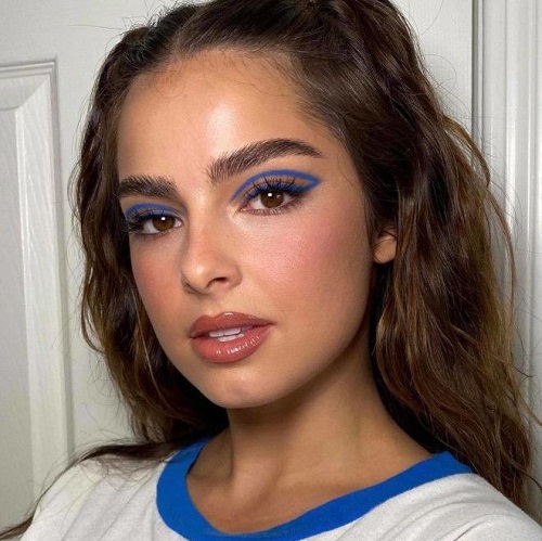 - Dilerseniz mavi far tercih etmek yerine mavi bir eyeliner ya da kalem far kullanarak da yaratıcı bir göz makyajı oluşturabilirsiniz. Tıpkı Addison Rae’in yaptığı gibi!
