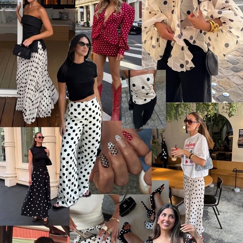 Özellikle siyah-beyaz puantiye, minimal stilin vazgeçilmezlerinden biri haline gelirken; renkli versiyonlar daha enerjik ve genç bir hava katıyor.