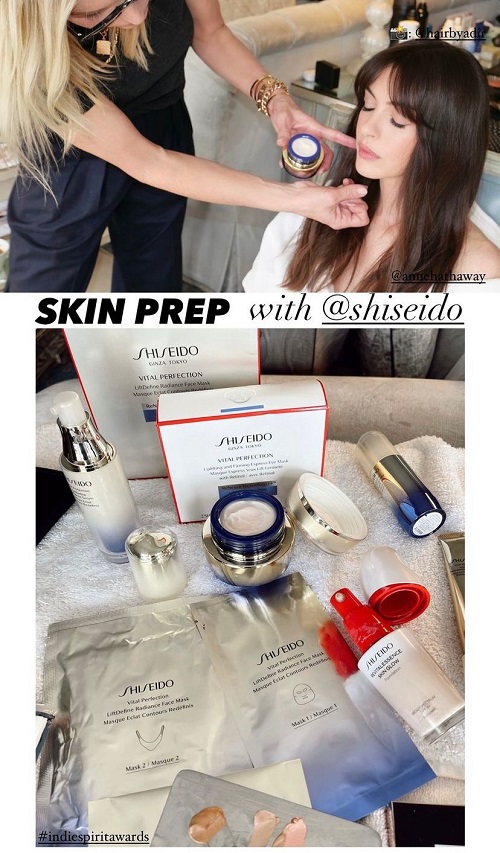 Aynı şekilde Anne Hathaway 39.su düzenlenen Independent Spirit Awards için de hazırlık aşamasında Shiseido ürünleriyle cildinin ışıltısını ortaya çıkarıyor.