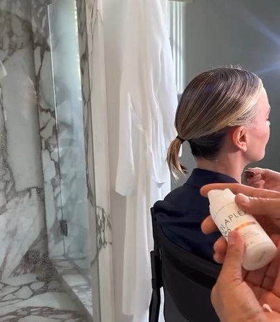 Önce saçları No.7 Bonding Oil ile hazırlıyor ve ısıya karşı koruyor. Ardından Volumizing Blow Dry Mist sıktıktan sonra saçlarına fön çekerek saç stilini oluşturmaya başlıyor. Son adımda ise No.6 Bond Smoother kullanarak pürüzsüz görünümü taçlandırıyor.
