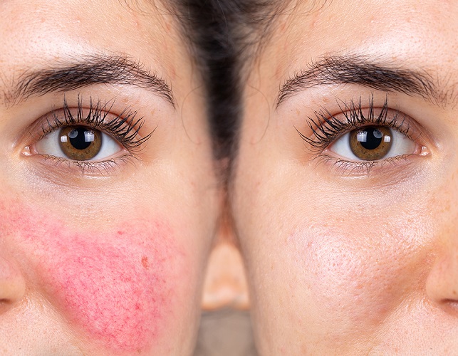 3) Yüksek ısı ve terleme kılcal damarları çoğaltır, tahriş eder ve daha çok kızarıklıklara neden olur. Bu yüzden direk güneşe maruz kalmayın, mutlaka 50 koruma faktörlü güneş kremi kullanın. UV ışınlarından koruma özelliği cildi sakinleştirir, kızarıklıkları soldurur.