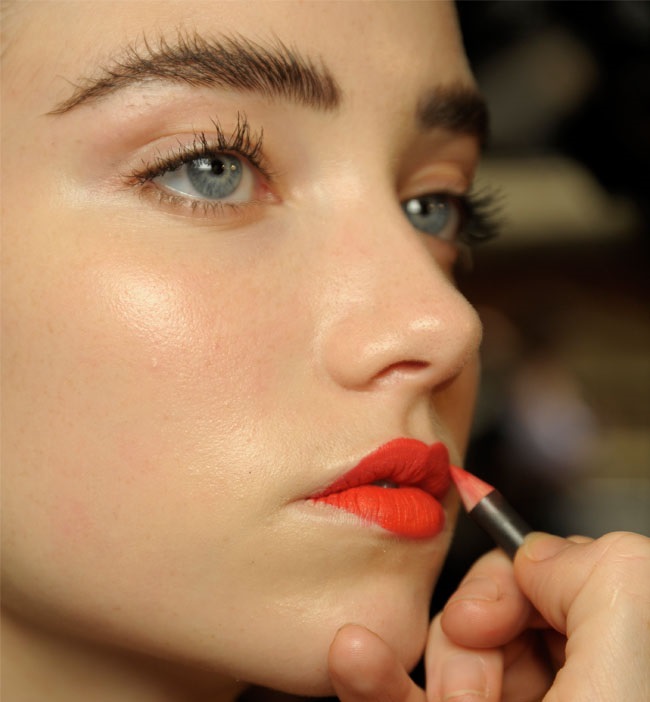 Şimdi sıra dudak kaleminizi dudak renginizden bir veya iki ton koyu seçmeniz ve bunu düzgün bir şekilde uygulamanız, bu işlemi yaparken isterseniz dudak çizginizin üstüne çıkarabilirsiniz. İlk önce dudağın kelebek kısmından başlayın ve onun hemen alt dudaktaki paraleli olan alt çizgiye sürün ve daha sonra kenarları birleştirin. Sürmüş olduğunuz dudak kalemini dış çerçevesindeki yoğunluğu bırakarak dudak içine doğru olan kısmı dudağın ortasına kadar dağıtın ve degradeyi unutmayın.
