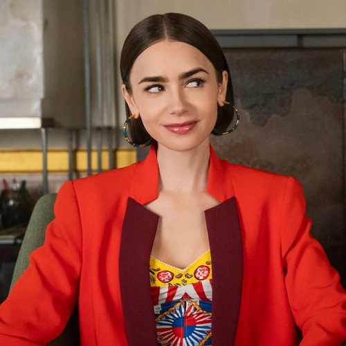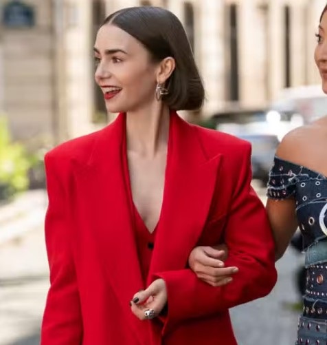 Emily’nin dudak makyajı, stilinin en keyifli noktalarından biri. Bazen parlak kırmızı tonlarla iddialı, bazen ise doğal pembe tonlarla romantik görünümler tercih ediyor.