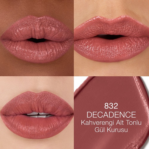 Öneri: NARS Explicit Lipstick serisinden Decadence rengine göz atabilirsiniz. Luxe Comfort Kompleksi sayesinde dudakları sararak hafif, orta ila tam kapatıcılık sağlar. Nemi hapseden pürüzsüzleştirici Kuşburnu Çekirdeği Yağı ve Hyaluronik Asit içeriğine sahiptir. Hassas ucu sayesinde dudakları zahmetsizce, konturlamaya ve şekillendirmeye yardımcı olur.