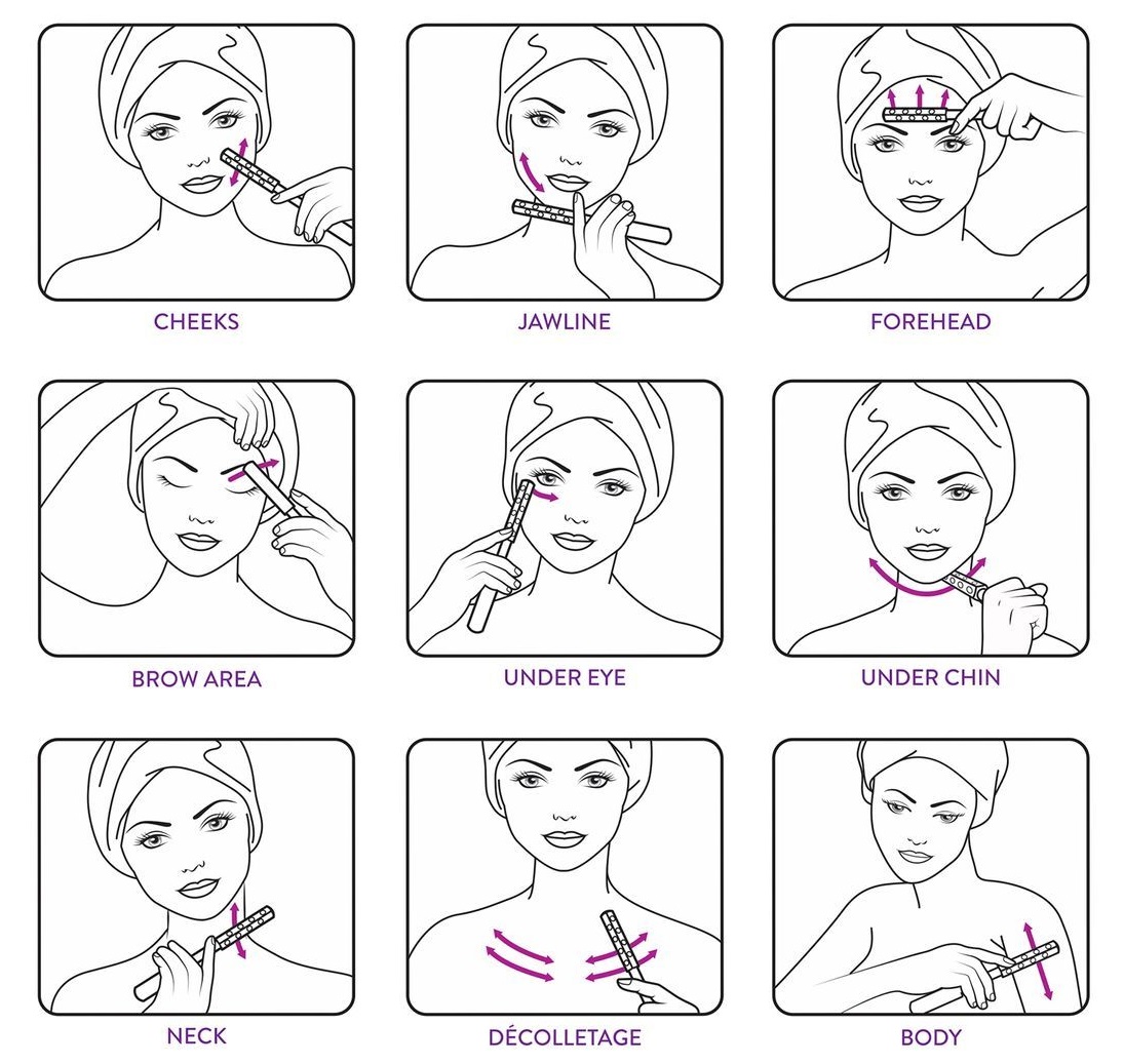 1) Öncelikle cildinize uygulamadan önce cildinizin kesinlikle temiz olmasına dikkat edin. Cildinizi temizledikten sonra mutlaka nemlendirin veya bir yüz yağı kullanın. Masaj sırasında cildiniz asla kuru olmamalı. Cildinizin iyi nemlendiğinden emin olmalısınız.