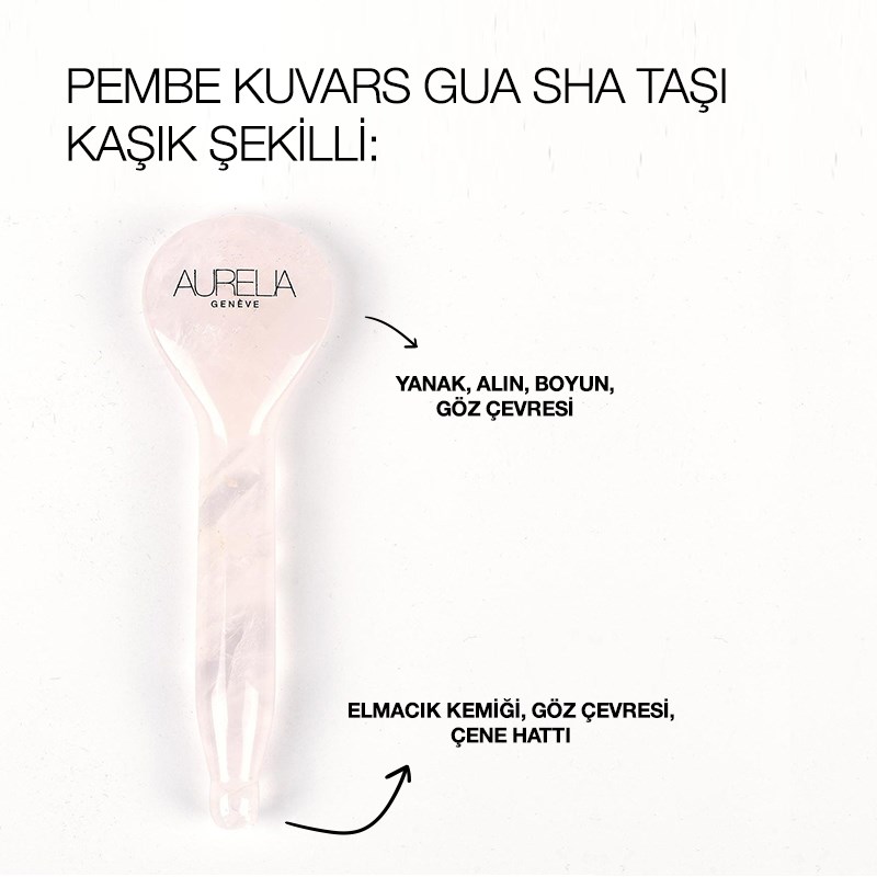 Aurelia Geneve Kaşık Şekilli Gua Sha Taşı: Doğal gül kuvars kristalinden yapılan ve kaşık şeklinde özel olarak tasarlanan bu Gua Sha taşı, tüm yüzde kullanılabiliyor olsa da göz çevresi için inanılmaz ideal bir dizayna sahip. Gözaltları, göz kapağı ve kaşlarda pratik ve rahatlıkla kullanılabiliyor. Göz çevresindeki sarkma, koyu halka, torba ve çizgileri de hafifletiyor.