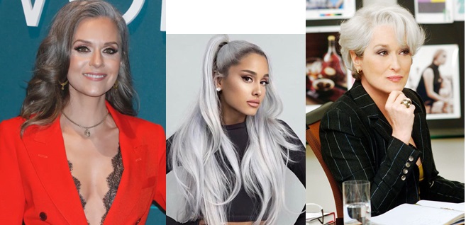 Saçlarınız kendiliğinden gri bir renge büründüyse ya da radikal bir kararla saçlarınızı gri yaptırmak istiyorsanız, hem saç rengini benimsemek hem de ilham almak için ünlülerin görünümlerini başvurmak en iyisi. Jane Fonda, Andie MacDowell, Jamie Lee Curtis, Meryl Streep, Hilarie Burton ve Ariana Grande gibi isimler, gri saç konusunda size ilham verecek yıldızlardan.
