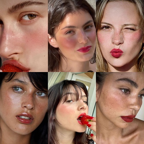Rhode isimli bakım ve güzellik markasının kurucusu olan Hailey Bieber, Tiktok üzerinden yaptığı paylaşımla son zamanlardaki favorisinin strawberry makeup olduğunu ifade ederken, markasından Glazing Milk ve Peptide Glazing Fluid ürünleriyle cildini makyaja hazırlıyor. Strawberry makeup makyajının püf noktası ise çok minimal, pratik ve doğal görünmesi. Bu makyajda özellikle yanaklar ve dudaklar trende adını veren şekilde çilek rengini anımsatan hafif kırmızı tonlarla renklendiriliyor.