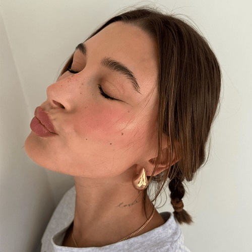 Hailey Bieber’ın paylaşımında da gördüğümüz üzere göz makyajı son derece minimal. Yüzünüze uyguladığı bronzer’ı göz kapaklarına da uygulayarak hafif gölgeli bir görünüm yaratıyor. Siz de bunu NARS Laguna Bronzing Cream ile kolaylıkla yapabilirsiniz.