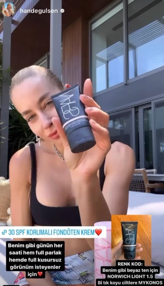 Hande Gülşen’in ten makyajındaki favorisi NARS’ın en ikonik ürünlerinin başında gelen Pure Radiant Tinted Moisturizer SPF30… Günün her saatinde cildinin parlak ve kusursuz görünmesini isteyen Hande Gülşen, SPF30 özelliğine sahip bu BB krem ile hem bir koruma sağlıyor hem de sunduğu doğal kapatıcılıktan faydalanıyor.