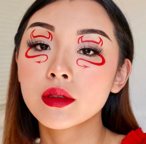 Kolay cadılar bayramı makyajı önerilerimizden biri de bu. Üstelik tek bir ürünle o gerekli detayı vermeniz de mümkün. Göz makyajında şeytanı andıran kuyruk ve boynuz detayını yaratabilmek için Shiseido Kajal InkArtist - Rose Pagoda rengini kullanabilirsiniz.