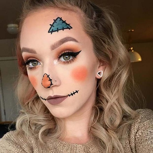 Cadılar Bayramı’nda değerlendirebileceğiniz bir başka görünüm de korkuluk makyajı. Burada göz makyajınızın nasıl görünmesini istediğiniz tamamen sizin zevkinize kalmış. Ancak korkuluk figürünün yüzündeki yama kısımlarını yaparken bir kez daha NARS Climax Eyeliner’dan destek alabilir, NARS Blush - Exhibit A ve Shiseido Kajal InkArtist – Sumi Sky ile yamaların içini renklendirebilirsiniz.