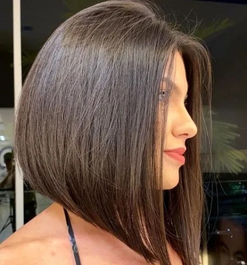 Straight long bob, omuz hizasında düz kesilmiş ve düz şekilde kullanılan uzun bob modelidir.