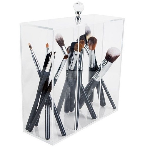 3 göze sahip pleksi fırçalık sayesinde fırçalarınızın hepsini belli bir düzen içinde görebilir, aradığınızı daha hızlı bulabilirsiniz. Hem fırçalarınızın düzenli ve temiz durması hem de makyaj masanızda az yer kaplaması açısından çok kullanışlıdır. Kutunun boyutları 19 x 14 cm ölçüsündedir.