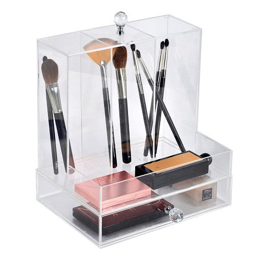 Hem fırçalarınız hem de makyaj malzemeleriniz için kullanabileceğiniz bu organizer, iki gözlü, üstü kapaklı ve altı çekmecelidir. Çok kullanışlı ve çok yönlüdür.