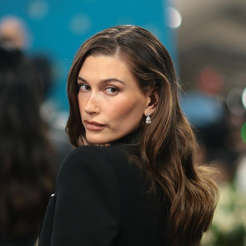 Hailey, 90’lar minimalizmini hatırlatan sade bir görünümle geceye katıldı. Saçı düze yakın hafif dalgalarla hareketlendirilmişti; sade ama şık.