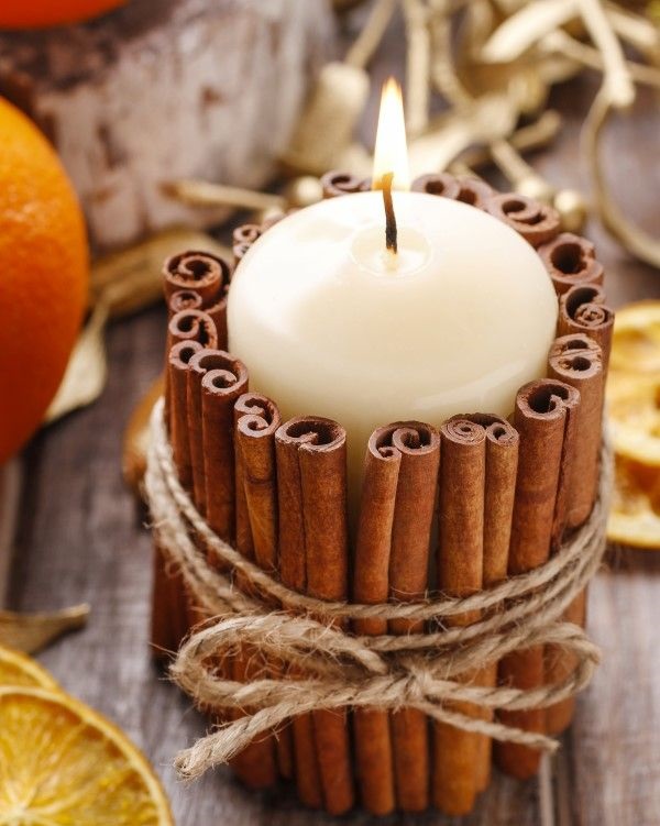Tarçın kokulu mum: Plastik ya da silikon bir kabın içine tarçın çubuklarını dizin. Tarçınları dizdikten sonra eritilen mumu kabın içine dökün.