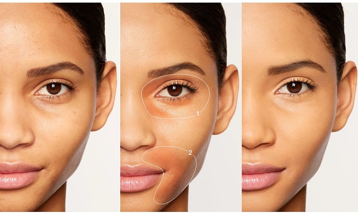 - Göz altındaki morluklar: Şeftali veya pembe tonlu correctorlar uygulanır.