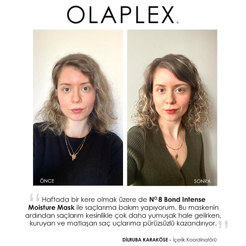 “Bundan yaklaşık 2 ay önce Olaplex No.4 Bond Maintenance Shampoo, No. 8 Bond Intense Moisture Mask ve No. 9 Bond Protector Nourishing Hair Serum’u saç bakım rutinimin düzenli parçaları haline getirdim.