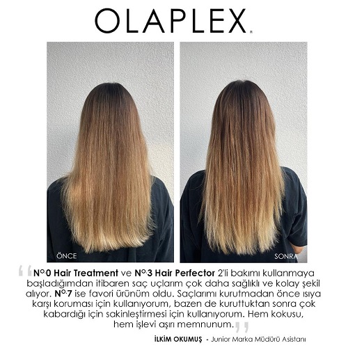 “Ürünleri aldığımdan beri düzenli olarak kullanıyorum. Özellikle No. 0 Intensive Bond Building Hair Treatment ve No 3 Hair Perfector’ı denemek istiyordum, kullanmaya başladığımdan itibaren saç uçlarım çok daha sağlıklı ve kolay şekil alıyor diyebilirim.