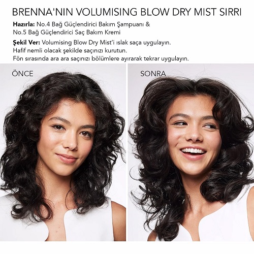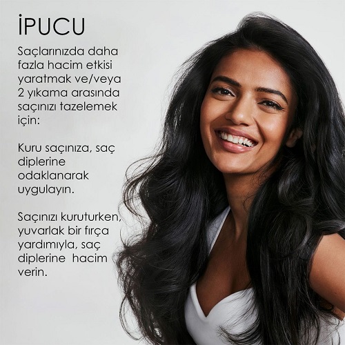 Islak veya kuru saçlara uygulanabilen Volumizing Blow Dry Mist’i isterseniz hemen duştan çıktıktan sonra kullanabilirsiniz. Ya da 2. gün saçlarınızı yenilemek için köklere uygulayarak ve yuvarlak bir fırça ile fön çekerek saçlarınıza şekil verebilirsiniz.