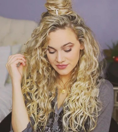 Eğer saçlarınız hem toplu hem de bukleleri ahenkle dans etsin isterseniz, o zaman da yarım topuz seçenekler arasına dahil oluyor. Burada da üstten toplayacağınız tutamın gergin mi yoksa hafif mi olacağı tamamen sizin tercihinize kalmış.