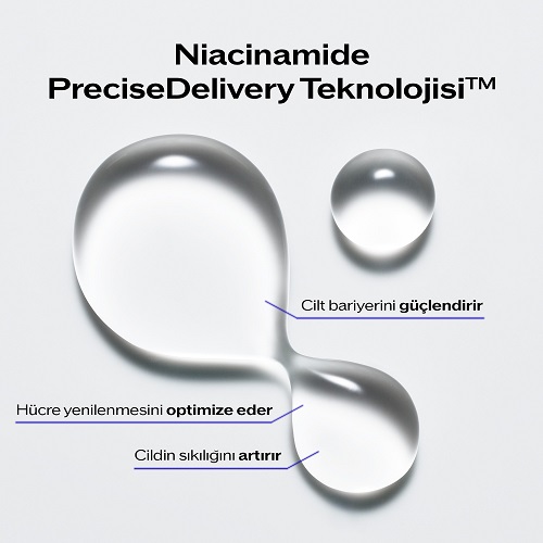 • PreciseDelivery Teknolojisi: 18 mikro uçlu aplikatör aracılığıyla Niacinamidin doğru cilt derinliğine hassas ve kontrollü şekilde iletilmesini sağlar.