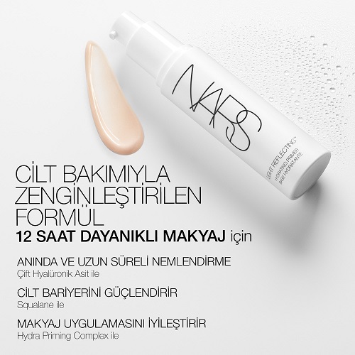 Soğuğa dayanıklı bir makyajın temeli, güçlü bir nem bariyeridir. NARS Light Reflecting Hydrating Primer, cildi makyaja hazırlarken aynı zamanda çevresel stres faktörlerine karşı koruyucu bir zemin oluşturur. Bu primer;