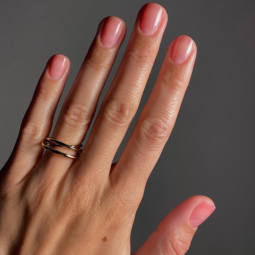 2. Jöle baz: Yarı saydam pembe bir jel ojeyi 1-2 kat tırnaklarınıza uygulayın. Bu sayede tırnağın doğal beyaz kısmı hafifçe görünür olacak ve “jelatinimsi” etki oluşacak.