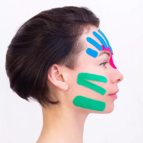 Yüz bantlama, cildin anında kaldırılmasına ve stratejik yerlerdeki kırışıklıkların gizlenmesine yardımcı olmak için kullanılıyor. Yüzü belirli alanlardan yukarıya doğru bantlayarak anında yüz germe efekti ortaya çıkarıyor.