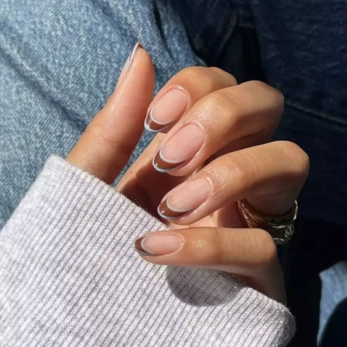 1. French’in yeni yorumu: Uçları buz mavisi, tabanı sıcak bej ya da açık kahve… Klasik French manikürün modern hali!