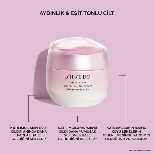 Shiseido White Lucent Brightening Gel Cream: Cilt bakımında serumun ardından mutlaka bir nemlendirici kullanmalısınız ki bu aşamada devreye White Lucent Brightening Gel Cream giriyor. Aşırı melanin üretimini bastıran ve var olan lekelerin rengini açan krem, yeni leke oluşumuna karşı ciltte bariyer oluşturuyor.