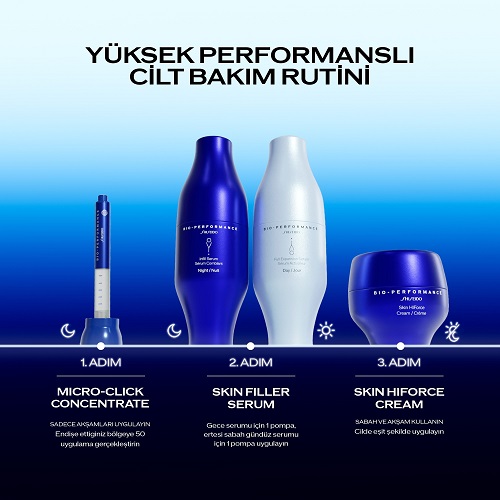 İçerisinde Shiseido Bio-Performance Micro-Click Concentrate, Bio-Performance Skin Filler Serum & Full Expansion Serum ve Shiseido Bio-Performance Skin HIForce Cream yer alır. Bio-Performance Micro-Click Concentrate estetik prosedürlerden ilham alarak geliştirilen sarkma, kırışıklık ve gözenek gibi yaşa bağlı sorunları hedef alan özel bir konsantredir.