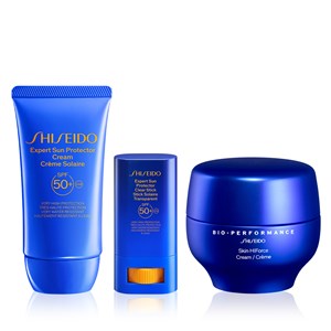 Shiseido 24-Hours Sun Protection & Replenishing Trio set içerisinde Shiseido Expert Sun Protector Cream SPF50+ 50 ML, Shiseido Bio-Performance Skin HIForce Cream 50 ml Shiseido Expert Sun Protector Clear Stick SPF50+ yer alır. Bio-Performance Skin HIForce Cream, estetik prosedürlerden ilham alan, cildinizin görünümünü içten dışa gençleştirmek için çalışan yüksek performanslı nemlendiricidir. Oxyshift Teknolojisi cildin yenilenme kapasitesini en üst seviyeye çıkararak gözle görülür derecede sıkılaşmış, dolgunlaşmış ve mükemmelleşmiş bir cilt görünümü sunar. Expert Sun Protector Clear Stick SPF50+ hem günlük hayatta hem de seyahat halindeyken UV savunması için SPF 50+ içeren şeffaf güneş koruyucudur. SychroShield Teknolojisi ile güçlendirilen bu stik güneş kremi, su ve ısıyla daha da güçlenen bir formüle sahiptir. Expert Sun Protector Cream SPF50+, beyaz iz bırakmayan, suya ve ısıya dirençli, yüksek koruma sağlayan güneş kremidir. Özellikle yüz için formüle edilmiştir. Sağlıklı, canlı bir cilt için yaşlanma belirtilerini önlerken güçlü bir UV koruması sağlar. Hafif yapılıdır ve beyaz iz bırakmaz. %60’tan fazla cilt bakım bileşeni içerir. Ürün detayları aşağıdadır.