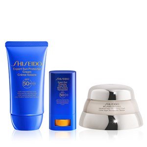 Shiseido 24-Hours Sun Protection & Revitalizing Trio set içerisinde Shiseido Expert Sun Protector Cream SPF50+ 50 ML, Shiseido Advanced Super Revitalizing Cream 50 ml Shiseido Expert Sun Protector Clear Stick SPF50+ yer alır. Advanced Super Revitalizing Cream, nemsizlik, ince çizgiler ve eşit olmayan cilt tonu gibi erken yaşlanma belirtilerine karşı 24 saat bakım sunan erken yaşlanma karşıtı süper canlandırıcı kremdir. Expert Sun Protector Clear Stick SPF50+ hem günlük hayatta hem de seyahat halindeyken UV savunması için SPF 50+ içeren şeffaf güneş koruyucudur. SychroShield Teknolojisi ile güçlendirilen bu stik güneş kremi, su ve ısıyla daha da güçlenen bir formüle sahiptir. Expert Sun Protector Cream SPF50+, beyaz iz bırakmayan, suya ve ısıya dirençli, yüksek koruma sağlayan güneş kremidir. Özellikle yüz için formüle edilmiştir. Sağlıklı, canlı bir cilt için yaşlanma belirtilerini önlerken güçlü bir UV koruması sağlar. Hafif yapılıdır ve beyaz iz bırakmaz. %60’tan fazla cilt bakım bileşeni içerir. Ürün detayları aşağıdadır.