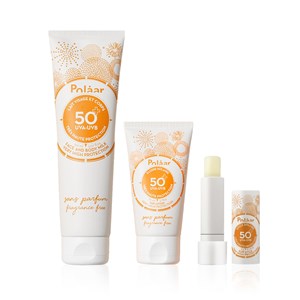 Polaar All Season Sun Protect Essential içerisinde Polaar Facial Sun Care Fluid SPF50+, Polaar Sunscreen Stick SPF50+ ve Polaar Face and Body Sun Milk SPF50+ yer alır. Facial Sun Care Fluid SPF50+ Fragrance - Free, kremsi dokusu ile UVA ve UVB ışınlarını etkili bir şekilde engelleyerek cilt yaşlanmasına karşı güçlü koruma sağlar. Parfümsüzdür. Hafif ve yağsızdır, beyaz iz bırakmadan cilde kolayca yayılır. Sunscreen Stick SPF50+ Fragrance - Free, güneş ışınlarına karşı yüksek koruma sağlayan stik şeklinde güneş koruyucudur. Özellikle dudak ve burun kenarı gibi güneşe karşı hassas olan bölgeleri etkili bir şekilde korur. Uygulaması kolay ve pratiktir. Face and Body Sun Milk SPF50+ Fragrance-Free , güneşe karşı koruma etkili kremsi dokuya sahip yüz ve vücut sütüdür. Organik ve mineral filtrelerden oluşan bir kokteyl içerir ve aşırı koruma sağlamak için UVA ve UVB güneş ışınlarının zararlı etkilerini etkili bir şekilde azaltır. Ürün detayları aşağıdadır.