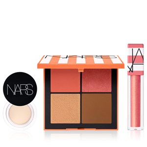 NARS Hot Escape Cheek Palette Medium Deep, NARS Hot Escape Afterglow Lip Oil ve NARS Soft Matte Complete Concealer ile farklı ve kusursuz makyaj görünümlerine imza atın.