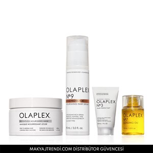 Olaplex Anti-Frizz & Maximize Moisture For Fine Hair Set içerisinde Olaplex Weightless Nourishing Mask, Olaplex No. 9 Bond Protector Nourishing Hair Serum, No. 3 Hair Perfector 30ML ve No. 7 Bonding Oil 7,5ML yer alır. Weightless Nourishing Mask ince ve orta telli saçlar için ağırlık hissi yaratmayan besleyici özelliğe sahip maskedir. Saçı ağırlaştırmadan besler ve bu sayede daha hacimli bir görünüm yaratır. Anında 2 kat daha fazla nem ve hacim sağlar. Saçın parlaklığını anında artırır, kırılmayı azaltır ve her yıkamada kırılmayı önleyerek saç sağlığını destekler. No. 9 Bond Protector Nourishing Hair Serum ısıya karşı koruma sağlayan ve besleyici saç serumudur. 232 dereceye kadar ısı koruması sağlamasının yanı sıra çevresel faktörlerin verdiği zarardan da korur. Serbest radikalleri nötralize ederek saçlardaki karışıklıkları açar, parlaklık ve yumuşaklık kazandırır. No.3 Hair Perfector, saçtaki kırılmaları azaltarak saçı gözle görünür şekilde güçlendirir. No.7 Bonding Oil Ultra besleyici, şekillendirici ve onarıcı bakım yağıdır. Saçınızda yağlı bir görünüm bırakmadan saçları onarır ve yeniler. Elektriklenmeyi en aza indirirken 232 dereceye kadar UV/ısı koruması sağlar. Ürün detayları aşağıdadır.