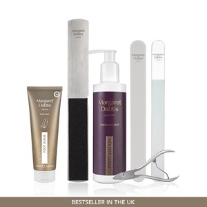 Margaret Dabbs London At Home Perfect Pedicure Set içerisinde Pure Natural Foot Scrub, Intensive Hydrating Foot Lotion, Professional Foot File + 2 replacement pads, Crystal Nail File, Super Shiner Buffer ve Toe Nail Cutter yer alır. Bu set profesyonel ürünlerle evde mükemmel pedikürü yapmanızı sağlar. Pure Natural Foot Scrub ayakları nazikçe arındıran ve güzelleştiren peeling’tir. Bu peeling ölü, kuru deri ve nasır katmanlarını temizlerken ayakları yumuşatır, canlandırır ve nemlendirir. Intensive Hydrating Foot Lotion ayakların hem sağlıklı hem de güzel olmasını sağlayan yoğun nemlendirici özelliğe sahip ayak losyonudur. Professional Foot File + 2 replacement pads sert deriyi güvenli ve hızlı bir şekilde yumuşatan ayak ve topuk törpüsüdür. 2 adet yedek ped içerir. Crystal Nail File tırnaklarınızı mükemmelce şekillendirmek için geliştirilmiş kristal tırnak törpüsüdür. Kullanımı kolaydır, sağlıklı tırnak büyümesini destekler ve tırnakların kırılmasını önlemek için tırnak kenarını kapatır. Super Shiner Buffer tırnakları anında parlatan, aydınlatan ve pürüzsüzleştiren törpüdür. Kullanımı kolay ve son derece etkilidir. Uzun süre kalıcı, sağlıklı bir parlaklık bırakır. Toe Nail Cutter paslanmaz çelik ayak tırnak makasıdır. En kalın ve inatçı ayak tırnaklarını bile pürüzsüz, hassas bir şekilde keser. Ürün detayları aşağıdadır.