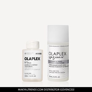 Olaplex Before & After Shower Routine Duo içerisinde No. 3 Plus Complete Repair Treatmentve No.5 Leave-In Moisturize & Mend Conditioner ( 100ml) yer alır. Plus Complete Repair Treatment, markanın en çok satan ürünü No.3’ün formülü güçlendirilmiş versiyonudur. Sadece 3 dakikada saçlara bakım yapar ve onarır. Saç 3 kat daha güçlü ve 3 kat daha yumuşak hale gelir. Zaman içinde %75 daha güçlü saç yapısı oluşturur. No.5 Leave-In Moisturize & Mend Conditioner saç uçlarını anında nemlendiren, yumuşatan, dolaşıklıkları açan ve kırıkları kapatan, saç sağlığını sürekli olarak onaran ve koruyan durulanmayan saç kremidir. Ürün detayları aşağıdadır.