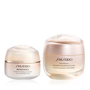 Shiseido Benefiance Face & Eye Duo içerisinde Benefiance Wrinkle Smoothing Cream ve Benefiance Wrinkle Smoothing Eye Cream bulunur. Bu ikili kırışıklar üzerinde son derece etkilidir. Benefiance Wrinkle Smoothing Cream sadece 2 haftada gözle görülür bir şekilde kırışıklıkları azaltır, ince çizgileri düzeltir ve cilde nem verir. Benefiance Wrinkle Smoothing Eye Cream kırışıklıkların daha hızlı azalmasına ve oluşumunun gecikmesine yardımcı olan göz çevresi bakım kremidir. Yenilenen formülü sayesinde sadece 5 gün içinde kırışıklıkların gözle görünür şekilde azalmasını sağlar. Ürün detayları aşağıdadır.