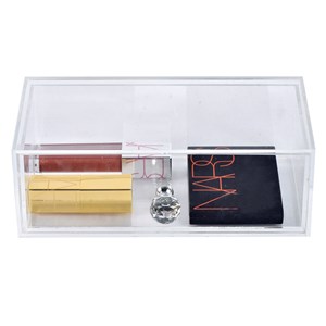 Pleksi makyaj organizeri sayesinde kozmetiklerinizin hepsini belli bir düzen içinde görebilir, aradığınızı daha hızlı bulabilirsiniz. Tek çekmeceli kutunun özel kristalden taşlı 1 adet kulbu vardır. Kozmetik ürünlerinizi düzenlemeye yardımcı çok bölmeli bir üründür. Adet olarak çokça olan makyaj malzemelerinizi derli toplu tutar. Çok yönlü ve kullanışlıdır. Çekmece şeklinde olmasından dolayı kullanımı rahattır. Hem makyaj malzemelerinizin düzenli kalması hem de hijyen açısından oldukça iyi bir alternatif olan bu şeffaf makyaj kutusunu sevdiklerinize de güzel bir hediye olur. Pleksi boyutları (20x10) genişliğinde, 6cm yüksekliğindedir.