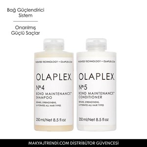 No. 4 Bond Maintenance Shampoo (250ml) ve No. 5 Bond Maintenance Conditioner (250ml) içeren settir. Olaplex’in patentli bağ güçlendirme teknolojisine sahip bu iki ürün, saçları daha parlak ve sağlıklı hale getirmeye yardımcı olur. No. 4 Bond Maintenance Shampoo yüksek oranda nemlendirici ve onarıcı şampuandır. Saçtaki kırılmaları azaltır ve elektriklenmeyi önlemeye yardımcı olur. No. 5 Bond Maintenance Conditioner saçların daha kolay taranmasını sağlarken, saçı derinlemesine nemlendirir. Ürün detayları aşağıdadır;