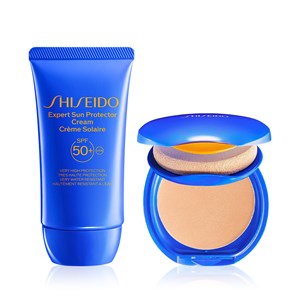 Bu setin içerisinde cildi güneşe karşı korurken aynı zamanda daha güzel bir görünüme kavuşmasını sağlayan Shiseido UV Protective Compact Foundation SPF30 ve %60’tan fazla cilt bakım bileşeni içeren ve beyaz iz bırakmayan Shiseido Expert Sun Protector Cream SPF50+yer alır.