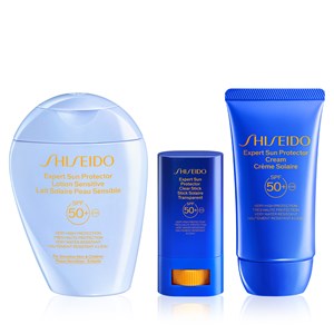 Shiseido Daily Sun Protection Trio içerisinde Shiseido Expert Sun Protector Lotion Sensitive SPF50+, Shiseido Expert Sun Protector Clear Stick SPF50+ ve Shiseido Expert Sun Protector Cream SPF50+ yer alır. Shiseido Expert Sun Protector Lotion Sensitive SPF50+ hassas ciltler ve çocuklar için özel olarak geliştirilmiş, nazik içeriklere sahip hafif yapılı ve nemlendirici özellikli SPF50+ güneş losyonudur. %85 oranında cilt bakım içerikleriyle formüle edilmiştir. Cildi UV kaynaklı hasara, nem kaybına ve kuruluğa karşı korur. Wetforce teknolojisi ile su ve ter ile temasta koruma daha da güçlenir. Shiseido Expert Sun Protector Clear Stick SPF50+ hem günlük hayatta hem de seyahat halindeyken UV savunması için SPF 50+ içeren şeffaf güneş koruyucudur. SychroShield Teknolojisi ile güçlendirilen bu stik güneş kremi, su ve ısıyla daha da güçlenen bir formüle sahiptir. Argan yağı ile ince çizgiler ve eşit olmayan cilt tonunu gözle görülür şekilde iyileştirir ve daha pürüzsüz bir cilt ortaya çıkarır. %65 cilt bakım içeriklerine sahiptir. Shiseido Expert Sun Protector Cream SPF50+, beyaz iz bırakmayan, suya ve ısıya dirençli, yüksek koruma sağlayan güneş kremidir. Özellikle yüz için formüle edilmiştir. Sağlıklı, canlı bir cilt için yaşlanma belirtilerini önlerken güçlü bir UV koruması sağlar. Hafif yapılıdır ve beyaz iz bırakmaz. %60’tan fazla cilt bakım bileşeni içerir. Ürün detayları aşağıdadır.