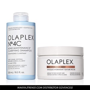 Olaplex Deep Cleanse & Moisture Duo içerisinde Olaplex Rich Hydration Mask ve Olaplex No.4C Bond Maintenance Clarifying Shampoo bulunur. Rich Hydration Mask kuru, orta ve kalın telli saçlar için yoğun nemlendirici özelliğe sahip ve elektriklenmeyi kontrol altına alan maskedir. Saça 16 kat daha fazla nem kazandırır. Biyomimetik Kütikül Teknolojisi ile formüle edilen bu saç maskesi, saç kütiküllerine 5 yıkamada nemi hapseder ve saç hasarına karşı kalkan oluşturur. No.4C Bond Maintenance Clarifying Shampoo saç derisini derinlemesine arındıran ve saçların daha sağlıklı olmasını sağlayan şampuandır. Tek kullanımda saçtaki fazla yağ, sert su mineralleri, klor, ağır metal gibi kirleri ve birikintileri nazikçe temizler. Saçı yenileyen ve pH dengeli formülü sayesinde kökten uca sağlıklı bir görünüm sağlar. Ürün detayları aşağıdadır.