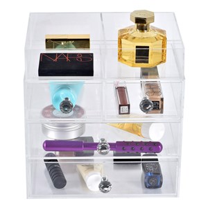 Pleksi makyaj organizeri sayesinde kozmetiklerinizin hepsini belli bir düzen içinde görebilir, aradığınızı daha hızlı bulabilirsiniz. Dört katlı kutunun özel kristalden taşlı kulpları vardır. Hem makyaj malzemelerinizin düzenli kalması hem de hijyen açısından oldukça iyi bir alternatif olan bu şeffaf makyaj kutusunu sevdiklerinize de güzel bir hediye olur. Pleksi boyutları (24x16) genişliğinde 21cm yüksekliğindedir. Çekmece yüksekliği (6x6x6) cm dir.