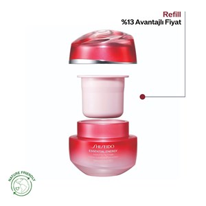 Shiseido Essential Energy Hydrating Day Cream SPF20, sağlıklı, ışıltılı ve canlı bir cilt için uzun süreli nemlendirme gücüne sahip, yaşlanma karşıtı gündüz kremidir. Bu krem, Shiseido’ya özel Hyaluronic Acid RED teknolojisi sayesinde cildin nem üretimini harekete geçiren ve ince çizgileri önleyen özel formüllere sahiptir. Shiseido’ya özel Hyaluronic Acid RED, daha derin ve 3 kat daha uzun süreli nem sağlar. Çift etki formülü: Nemi destekler, yaşlanmanın ilk belirtilerini önler. Essential Energy, canlı bir görünümle enerji dolu bir cildi ortaya çıkarmak için 360 derece nemlendirme sağlar. Cildin kendi doğal hyalüronik asit üretimini teşvik ederek cildi derinlemesine nemlendirir. Çok hızlı şekilde cildin neme doymasını ve uzun süre bu durumun korunmasını sağlar. SPF20 sayesinde cildi korur. Cilt, kremin verdiği enerji ile parlar ve yumuşaklık kazanır. Sadece 1 gün sonra pürüzsüz, yumuşak, dolgun ve esnek bir cilt ortaya çıkar. 2 hafta sonra ise ince çizgi görünümü azalmış, gözenekleri küçülmüş sağlıklı ve canlı bir cilt görünümü elde edilir. Nemsizlik, cilt donukluğu, cilt yorgunluğu, pürüzlülük ve ince çizgilerden şikayet eden her kadın için uygundur. Tüm cilt tipleri kullanabilir. Sürdürülebilirlik için doldurulabilir kavanoza sahiptir.