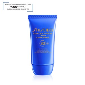 Shiseido Expert Sun Protector Cream SPF30, beyaz iz bırakmayan, suya ve ısıya dirençli, yüksek koruma sağlayan güneş kremidir. Özellikle yüz için formüle edilmiştir. Sağlıklı, canlı bir cilt için yaşlanma belirtilerini önlerken güçlü bir UV koruması sağlar. Hafif yapılıdır ve beyaz iz bırakmaz. %60’tan fazla cilt bakım bileşeni içerir. Yani güneşten korurken aynı zamanda cildinize bakım da yapar. Yeni AutoRepair ile çizilme ve sürtünme nedeniyle hasar görmesi durumunda UV koruyucu örtüyü onarır. Wetforce teknolojisi ile su ve ter ile temasta koruma daha da güçlenir. Ayrıca UV korumasını güçlendirmek için güneşten gelen ısıya direnç gösteren Heatforce teknolojisi ile formüle edilmiştir. Böylece ısıyla birlikte koruma daha da artar. Suyun içinde veya dışında güneş koruma tamamen aktiftir. Cildi kırışıklıklar ve lekeler gibi UV kaynaklı yaşlanma belirtilerine karşı korur. Cildi nemlendirir, kuruluğu önler ve rahatlatır. NatureSurge Kompleksi ile cildi hava kirliliğine karşı korur. Hyalüronik Asit sayesinde 4 saat boyunca cildi nemsizlikte korur. Tüm cilt tipleri için uygun bir üründür. Plajda, havuzda, su sporlarında, kış sporlarında kullanmak için mükemmeldir.