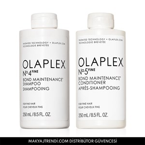 Olaplex Fine Bond Maintenance Cleanse & Condition Duo set içerisinde Olaplex No. 4 Fine Bond Maintenance Shampoo (250ml) ve Olaplex No. 5 Fine Bond Maintenance Conditioner (250ml) bulunur. No.4 Fine Bond Maintenance Shampoo ince telli saçlar için özel olarak geliştirilmiş, ağırlık yapmadan saçları temizleyen ve hacim veren bağ güçlendirici bakım şampuanıdır. İnce telli saçlara hacim verdiği ve güçlendirdiği klinik olarak kanıtlanmıştır. Saçları nazikçe temizlerken aynı zamanda güçlendirir ve korur. No. 5 Fine Bond Maintenance Conditioner ince telli saçlar için özel olarak geliştirilmiş, ağırlık yapmayan, ultra hafif yapıda bağ güçlendirici saç kremidir. İnce telli saçlara hacim verdiği ve güçlendirdiği klinik olarak kanıtlanmıştır. %60 oranında saç kırıklarının azalmasını sağlar. Ürün detayları aşağıdadır.